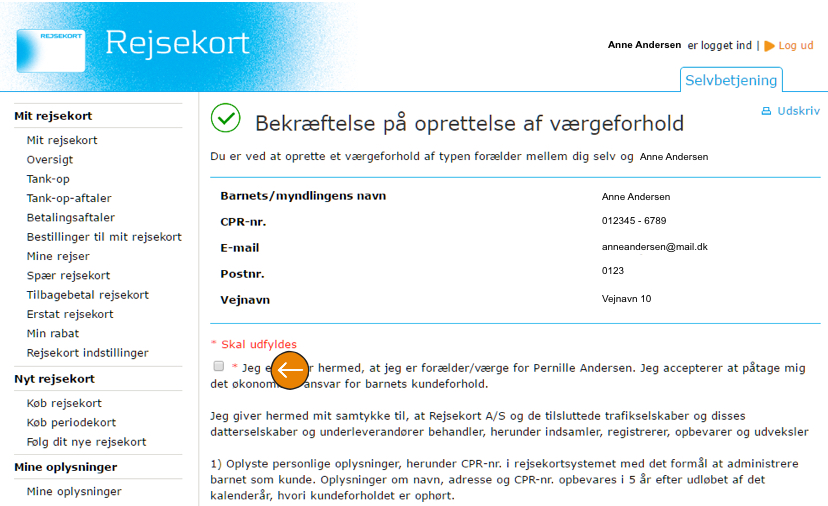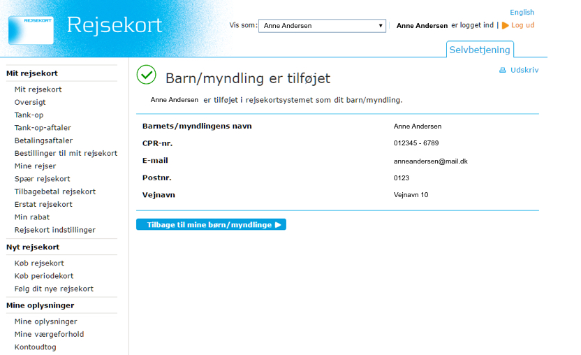 Nu ser du en bekræftelse på skærmen. Den får både du og barnet også sendt pr. mail.