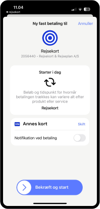 Vælger du betalingskort, så godkend aftalen ved at swipe til højre.