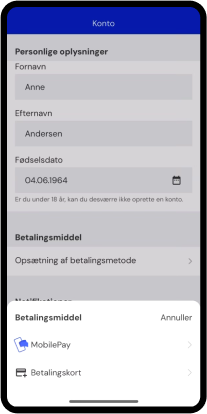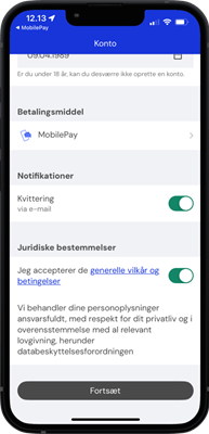 Vælger du MobilePay, så godkend betalingsaftale ved at swipe til højre.