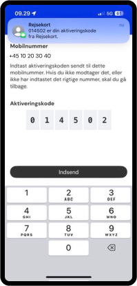 Indtast dit mobilnummer. Du modtager en sms med en aktiveringskode.