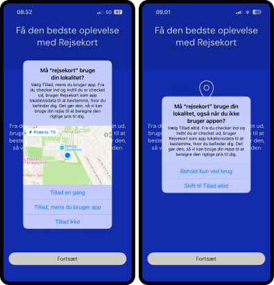 Så kan appen mere nøjagtigt vurdere din rejse og korrekte pris.