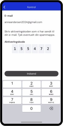 Du modtager en aktiveringskode på mail i din indbakke.