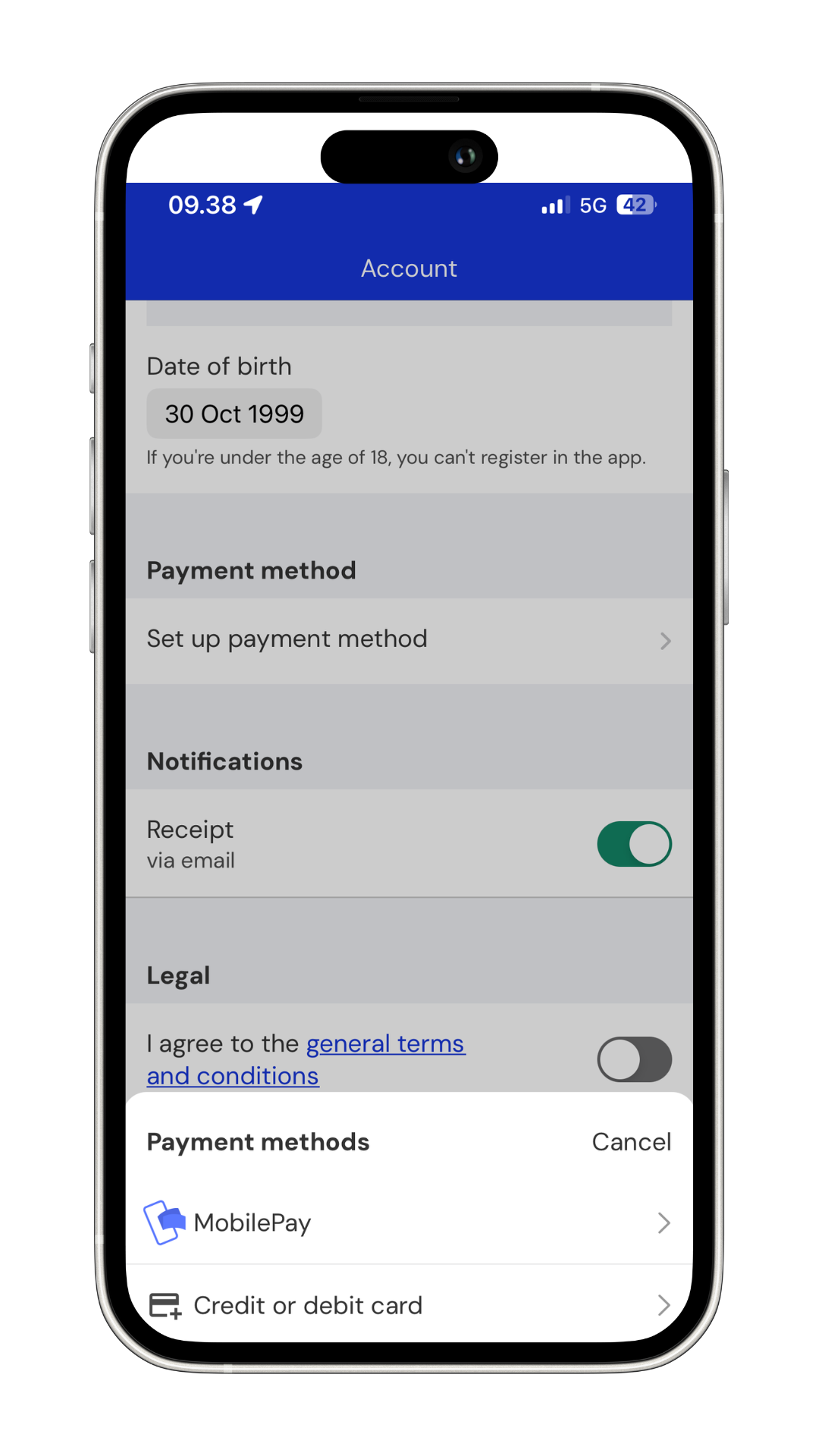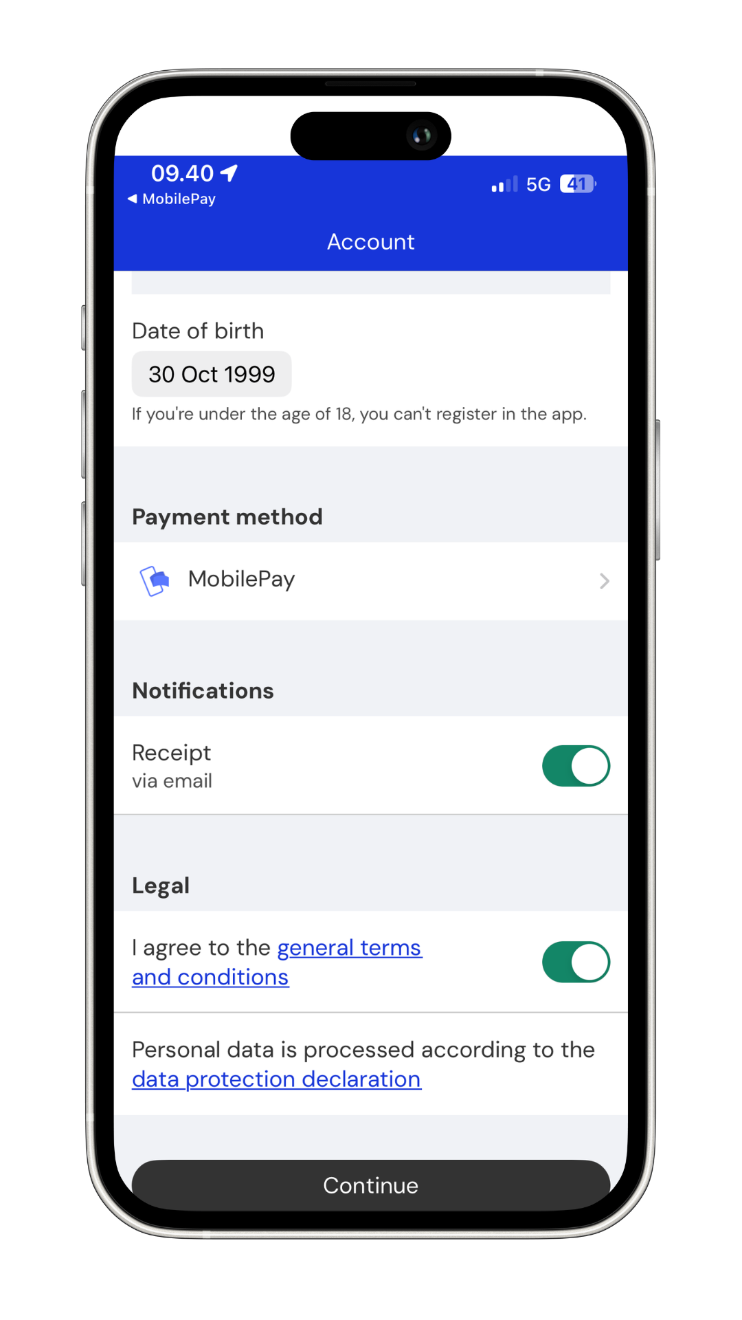 If choosing MobilePay, accept by swiping right. You will return to Rejsekort as an app automatically.