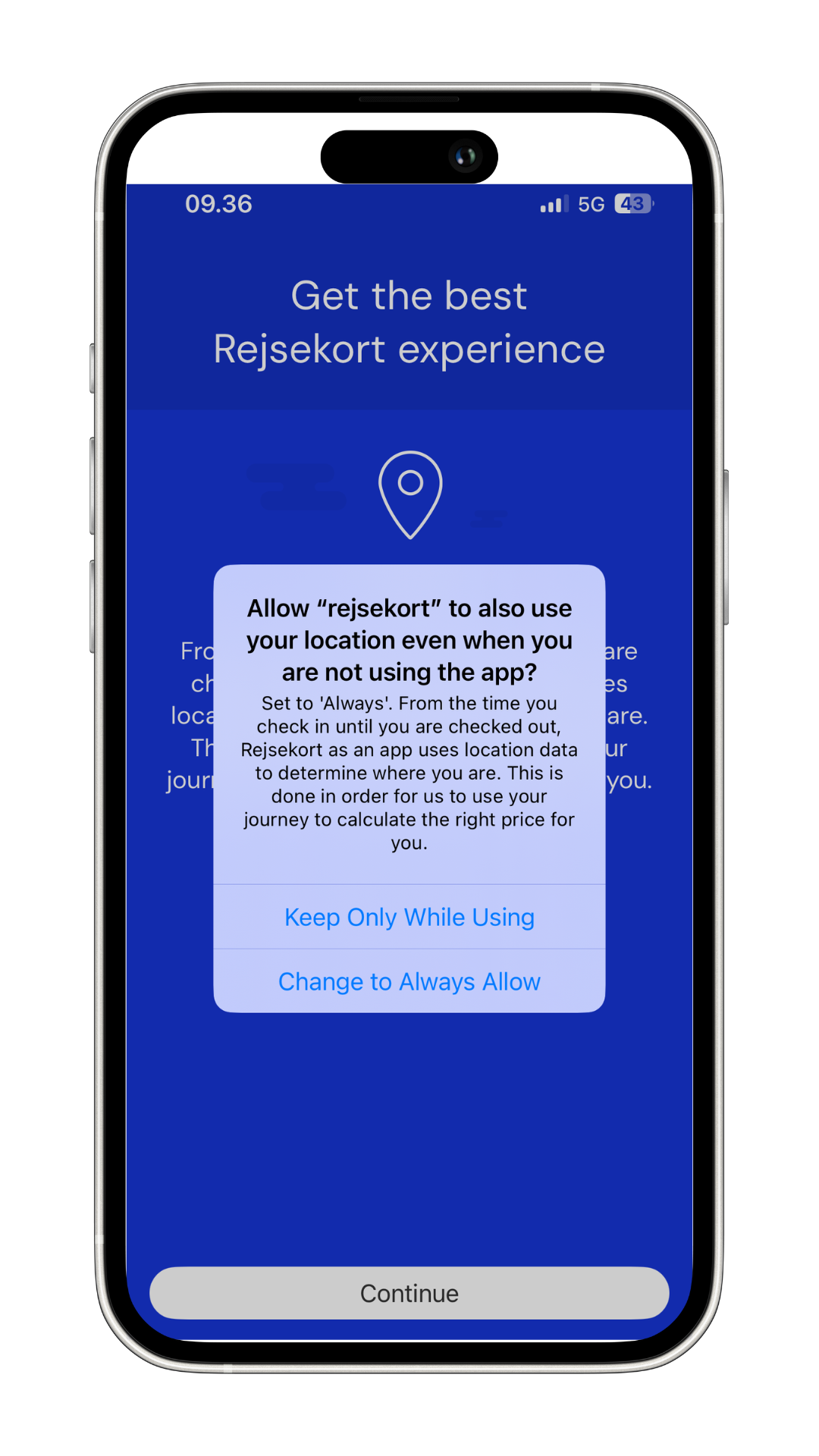 If choosing Debit card, accept by pressing Save. Close MitID and open Rejsekort as an app again.