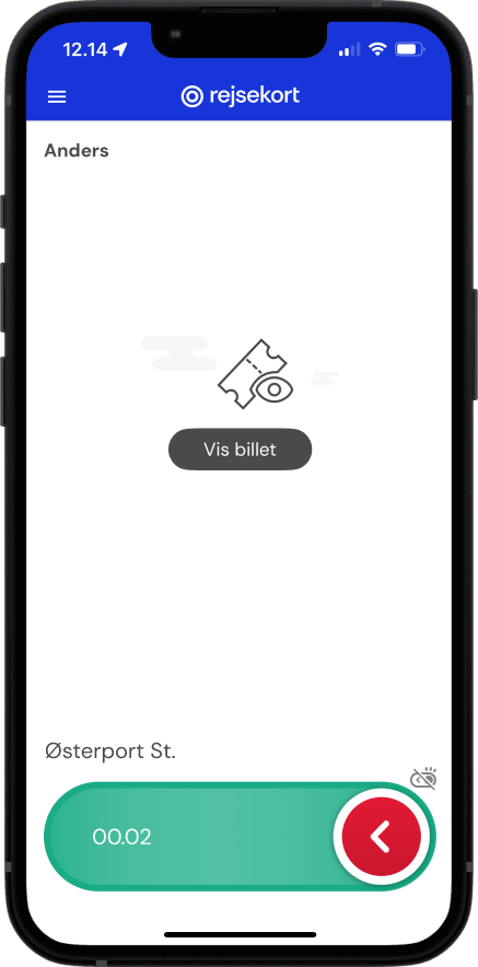 Hvis du skifter transportmiddel undervejs på din rejse, skal du ikke foretage dig noget i appen. Når du når til din slutdestination, og du har forladt det sidste transportmiddel, skal du checke ud af Rejsekort som app ved at swipe til venstre.